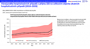 Počet akutních hospitalizací z příjmu ZZS v nemocnicích se sídlem v JMK kolísá, aktuální hodnota je 27 344 (2020). Tento počet hospitalizací představuje 10,5% z celkového počtu hospitalizací z příjmu ZZS v ČR. Nárůst v roce 2020 odpovídá celorepublikovému trendu. Celkem 89,7 % hospitalizací z příjmu ZZS v nemocnicích JMK se týká obyvatel JMK.